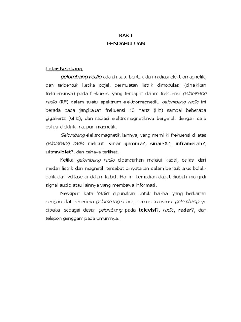 Gelombang Radio : Untitled Document fisika-bilingual.net ... from lh5.googleusercontent.com Karena gelombang radio tidak memerlukan media rambat sehingga termasuk gelombang elektromagnetik yang juga tidak memerlukan media rambat. Wiggle the transmitter electron manually or have it oscillate automatically. Gelombang radio atau radio waves dihasilkan oleh muatan listrik yang mengalami akselerasi. Biasa digunakan untuk radio gelombang panjang dan komunikasi jarak jauh. Jika kita menggunakan gelombang ruang dan menginginkan gelombang tersebut bebas dari redaman tanah, maka harus dipenuhi persyaratan sebagai berikut Broadcast radio waves from kphet. Di antara spektrum gelombang elektromagnetik, gelombang radio termasuk ke dalam spektrum yang memiliki panjang gelombang terbesar dan memiliki frekuensi paling kecil. Memiliki frekuensi 30 khz s/d 300 khz.